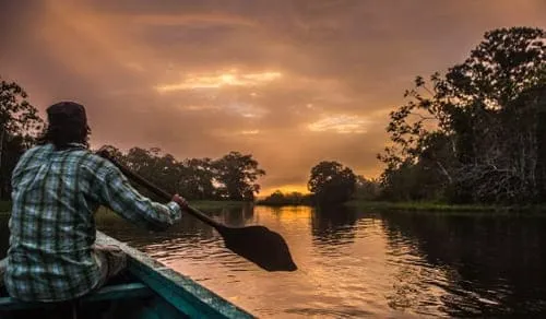 El tour se inicia saliendo del lodge a las 05:00 de la mañana, navegaremos por el río Momón llegando a la confluencia de los ríos Nanay y Amazonas. Apreciaremos el amanecer desde el Rio Amazonas, una de las maravillas del Mundo, y si la suerte nos acompaña disfrutaremos la belleza de los Delfines Grises y Rosados.